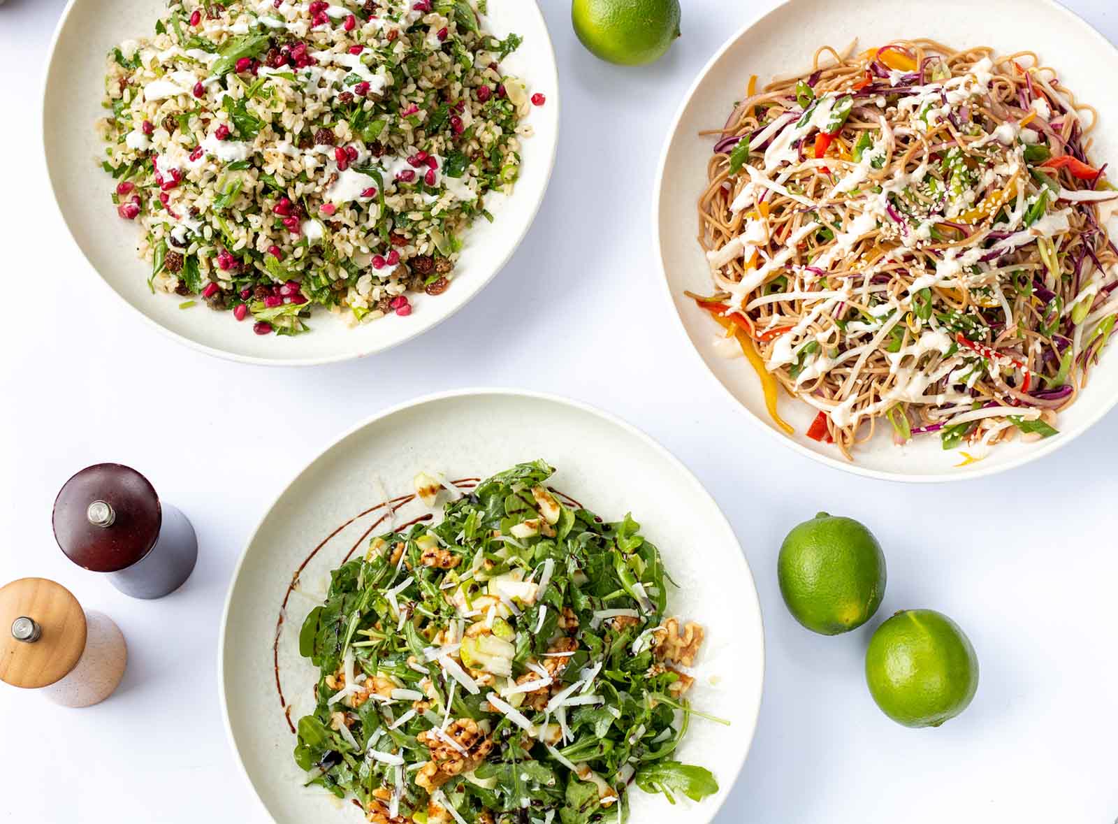 Lettuce, croutons, bacon, Parmesan, Caesar dressing, eggs.